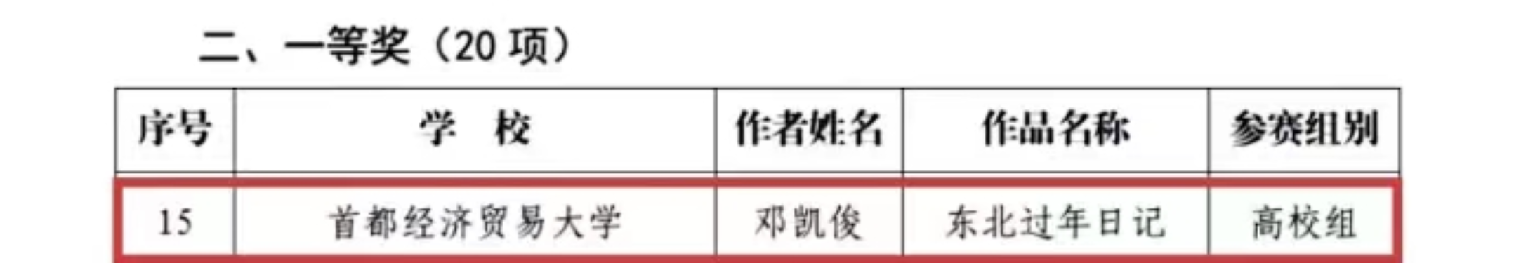 很荣幸在这次“见字如面:我回故乡过大年”主题短视频活动中获得一等奖。当初投递作品的时候,我只是抱着试一试的心态,想以视频的形式记录家里过年期间的活动。作品从拍摄到剪辑完成,我并没有把它当做一项作业或者负担,没有功利性的念头,更多地倾注了我本人对家乡的情感。所以在被告知获奖的时候,惊喜的同时还很感动,感谢老师同学们对这份作品的认可,让它有机会在更大的平台上展示,也让我的家乡被更多的人所关注。